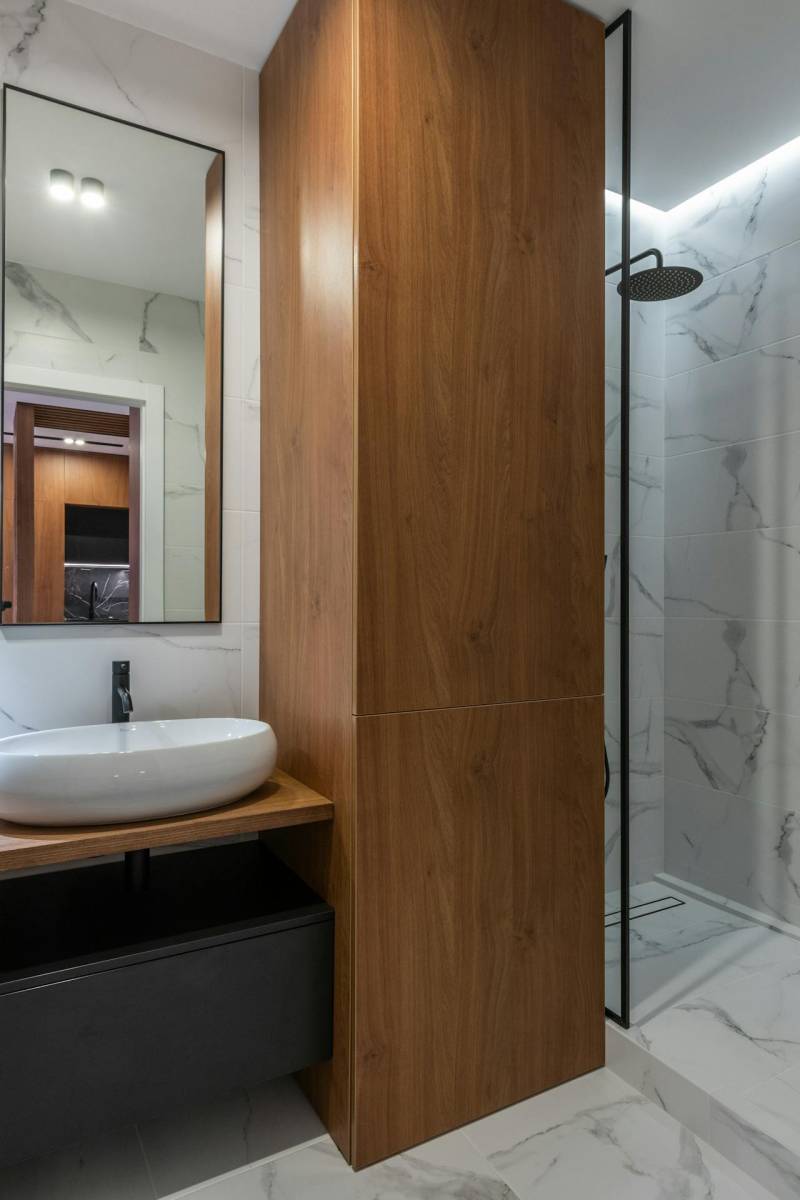 Coin douche rénové dans une petite salle de bain de Strasbourg centre